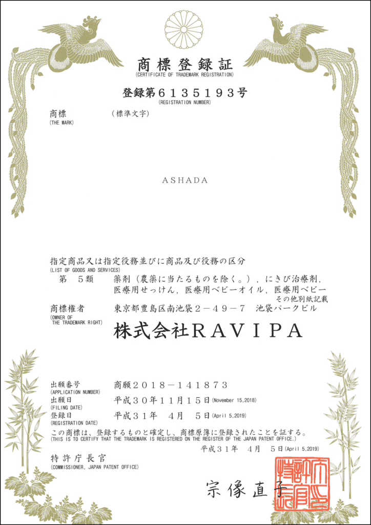 アスハダ(ASHADA)は商標として登録されています。